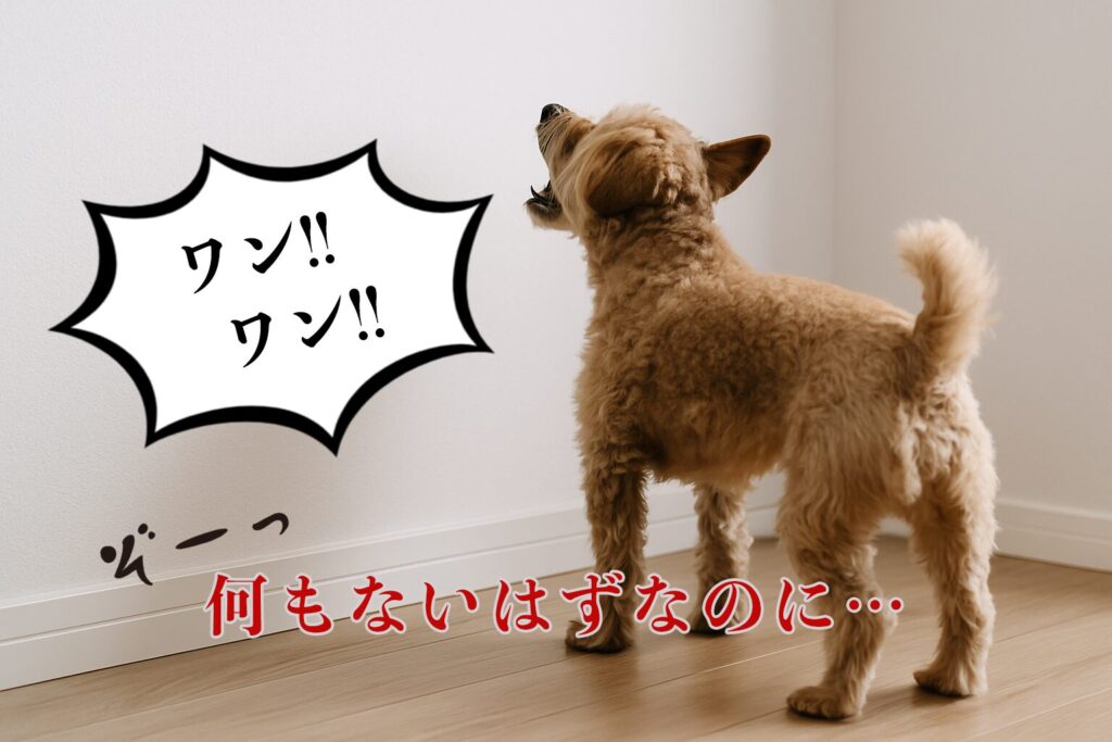 犬と暮らしていると、ふとした瞬間に部屋の隅をじっと見つめ、耳をピンと立てたまま「ワン!」と吠えることがあります。
